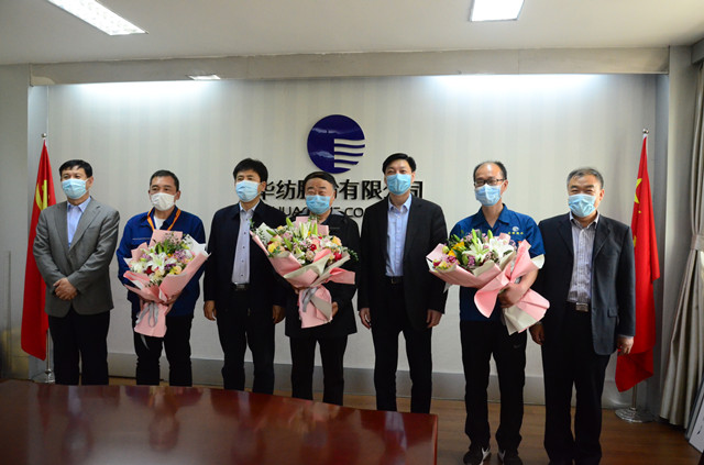 近日,五一勞動節(jié)來臨之際,濱州市市委常委、秘書長張延廷,市政協(xié)副主席、市總工會主席商玉昌,市總工會黨組書記、分管日常工作的副主席劉祖慶,市總工會黨組成員、副主席、經(jīng)審委主任王恩東一行,來到華紡股份有限公司,為濱州市五一勞動獎?wù)芦@得者、服裝車間主任晁金光頒發(fā)勞動獎?wù)拢蛉珖徔椥袠I(yè)勞動模范、山東省勞動模范、公司黨委書記、董事長王力民,山東省勞動模范、電氣高級工程師趙奇生和晁金光三位企業(yè)勞模代表贈送鮮花、表達(dá)慰問,并與他們進行了深入座談。