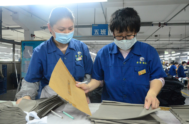導讀:服裝車間點位工褚翠葉和楊春芳每天的日常工作,是一次次重復將底板對應在需要進行定位的生產材料上,并用記號筆標定生產加工的具體位置。