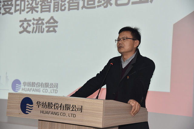 公司黨委副書記盛守祥代表公司,向與會領導及會員單位代表介紹了公司“退城進園”暨“智能綠色工廠建設項目”、升級印染全流程的智能制造等情況,并圍繞公司近年來大力推進企業轉型升級和新舊動能轉換工作,重點介紹了公司在智能智造、綠色生產方面的主要做法與經驗。公司副總工程師王國棟對公司近年來推動轉型升級及打造“智慧華紡”的整體發展成效,作了專題報告。