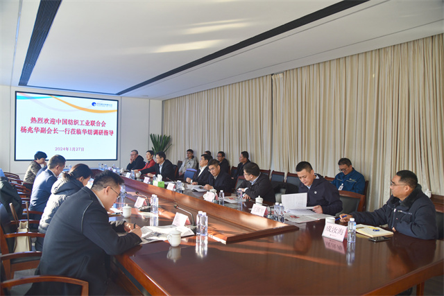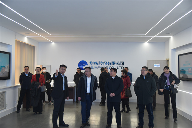 1月27日,中國紡織工業(yè)聯(lián)合會(huì)副會(huì)長楊兆華一行到華紡股份調(diào)研指導(dǎo)工作。市工信局黨組書記、局長姚振祥,濱城區(qū)副區(qū)長袁見,公司黨委書記、董事長盛守祥陪同調(diào)研。