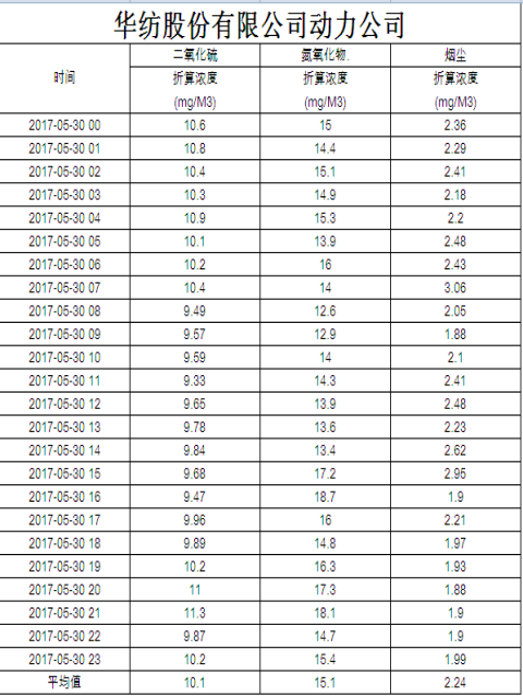 煙氣排放數據信息公開2017.5.30數據