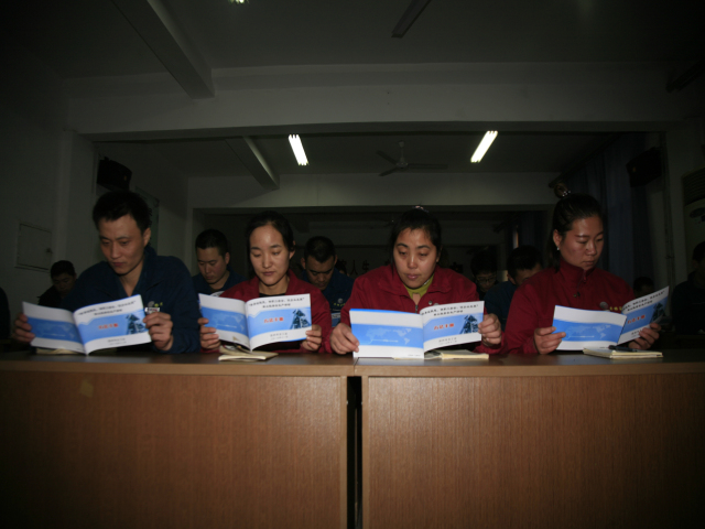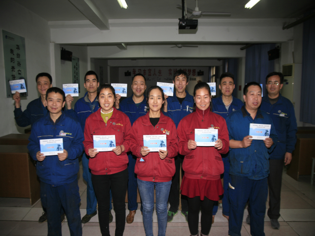 圖為公司向生產(chǎn)一線部分輪班(工段)長(zhǎng)發(fā)放《手冊(cè)》時(shí)的情形。